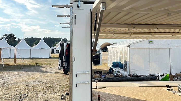 Der BDP Eventcontainer 2x20DV ist die ideale Lösung für professionelle Veranstaltungen im Freien. Mit Dachterrasse, ausklappbaren Seitenwänden und flexibler Nutzung vereint er Funktionalität, Design und Mobilität in einem hochwertigen Eventmodul.