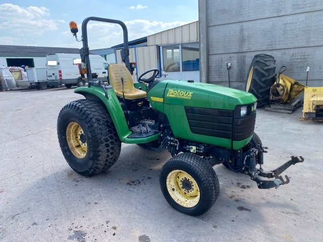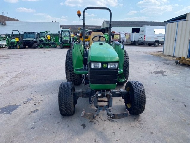 Der JOHN DEERE 4710 Landwirtschaftstraktor ist mit einem 46,3 PS starken Yanmar-Dieselmotor und einem hydrostatischen Getriebe ausgestattet.